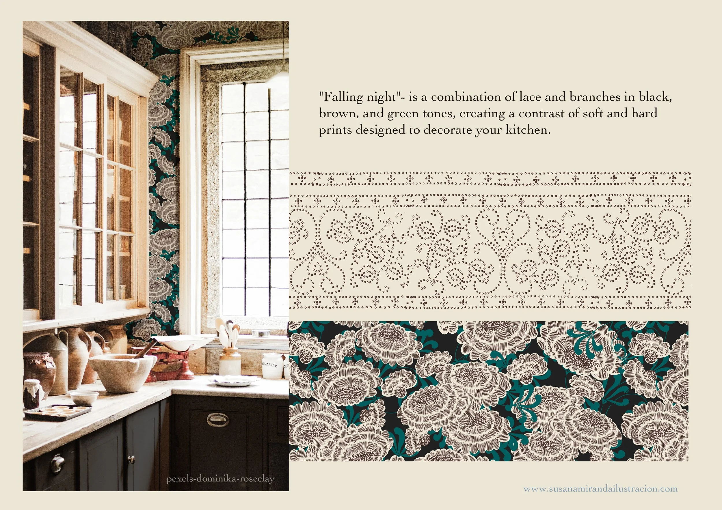 Falling Night Todos/AllColecciones/CollectionsFloralFigurativo/Conversational 27 mar Escrito por Susana Miranda Colección disponible/ Available at Spoonflower Verde oscuro/Dark greenFigurativo/ConversationalColecciones/CollectionsMarrón/BrownBeigeNegro/BlackFloral Susana Miranda